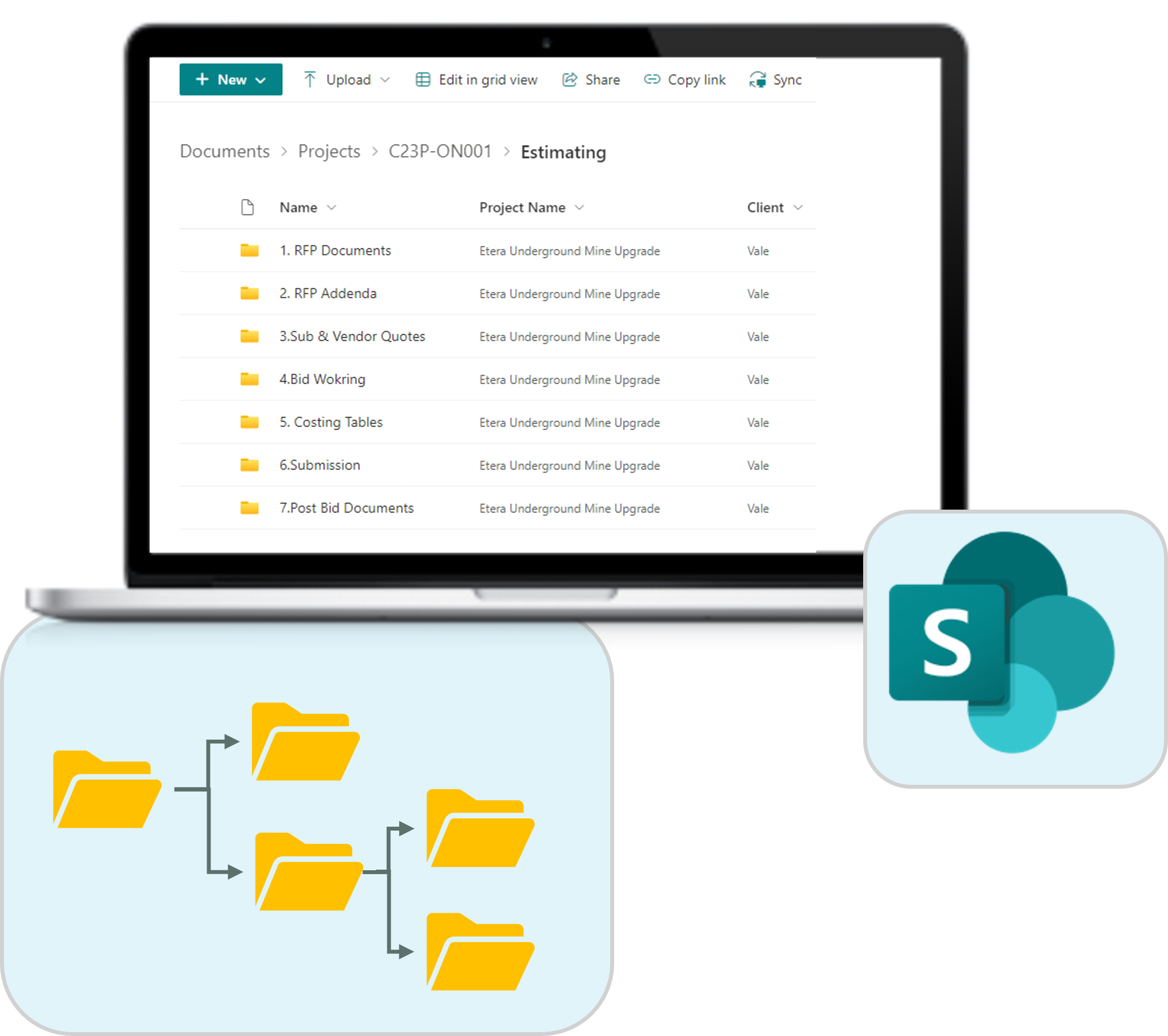 Access documents directly from Pre-construction platform. Don’t lose the flexibility of SharePoint for document storage or integrate with a more structured document management system
