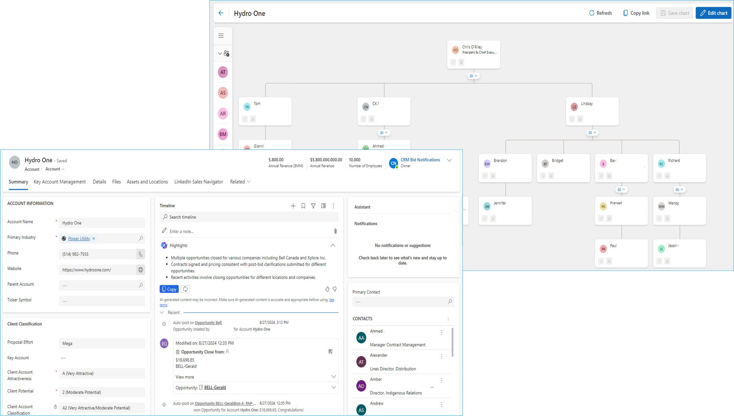 Streamline operations with dynamic org charts, auto-linked opportunities, develop capture plans, and actionable insights into client performance—all in one location. A 360-degree view of relationships for enhanced client management and better decision-making.